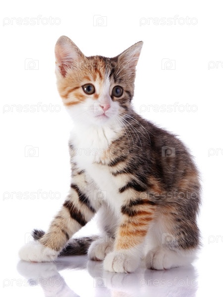 Разноцветный котенок на белом фоне