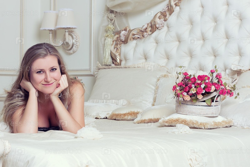 Девушка с розами лежит в постели