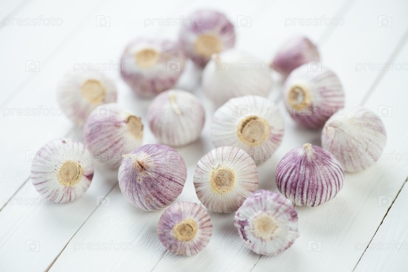 Китайский чеснок на белом деревянном фоне
