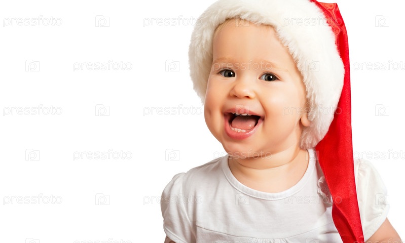 Красивый счастливый ребенок в рождественском колпаке