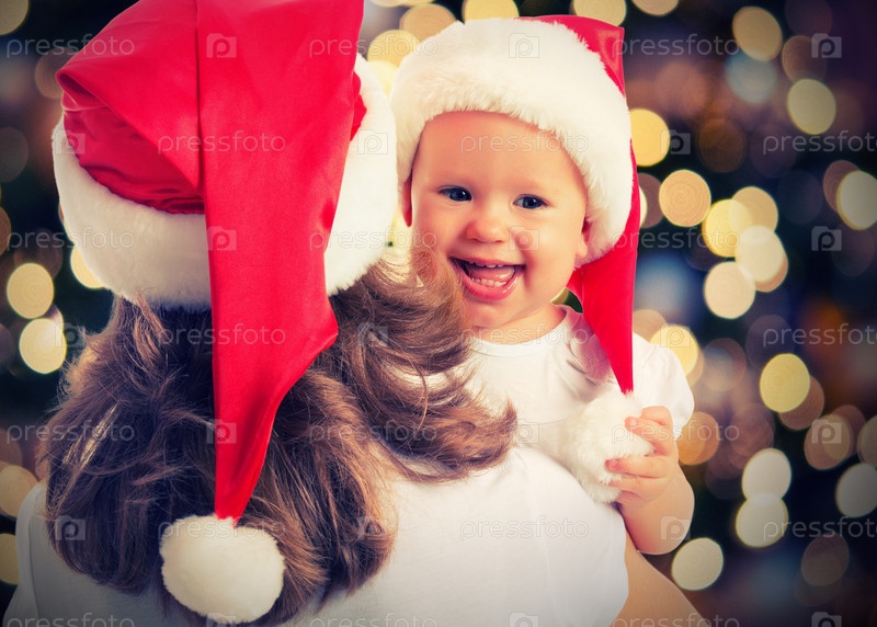 Рождественская веселая мать и ребенок