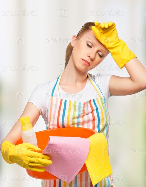 Молодая домохозяйка, уставшая от работы по дому