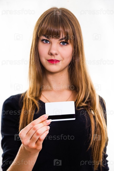 Девушка протягивает визитную карточку