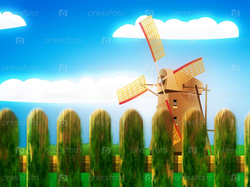 Ветряная мельница и летний пейзаж