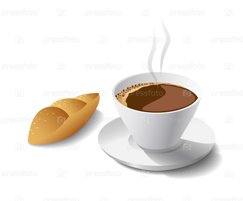 Чашка ароматного утреннего кофе с булочкой