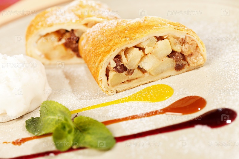 Яблочный штрудель с ванильным мороженым