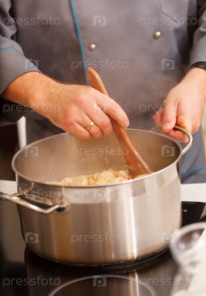 Шеф-повар готовит блюдо