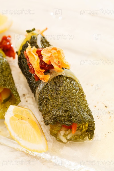 Листья савойской капусты, фаршированные овощами