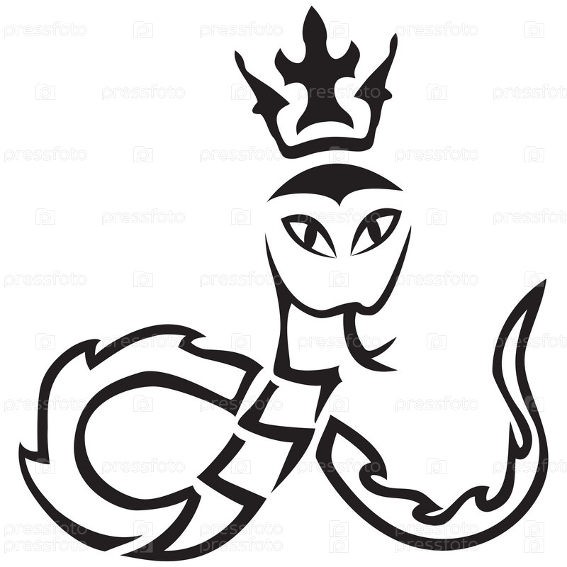 Змея с короной. Векторная иллюстрация в стиле трайбл