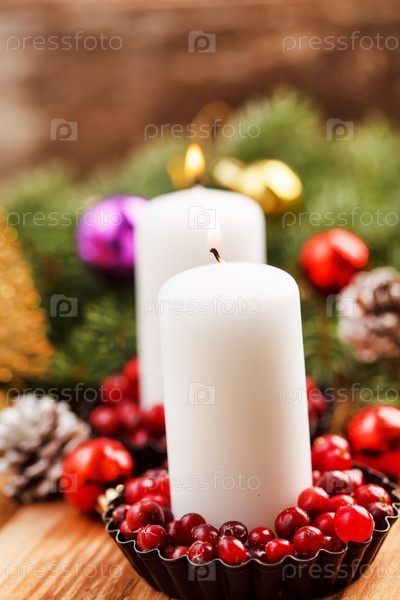 Рождественские украшения с зажженными свечами