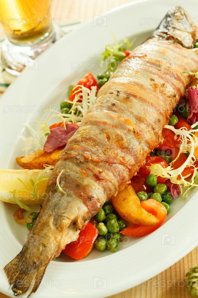 Форель с овощами и пивом