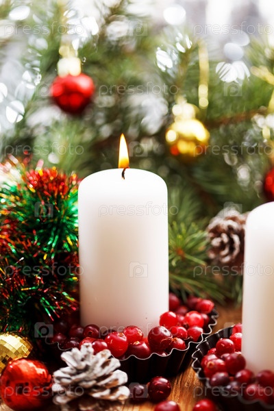 Рождественские украшения с зажженными свечами