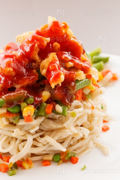 Лапша с курицей и овощами