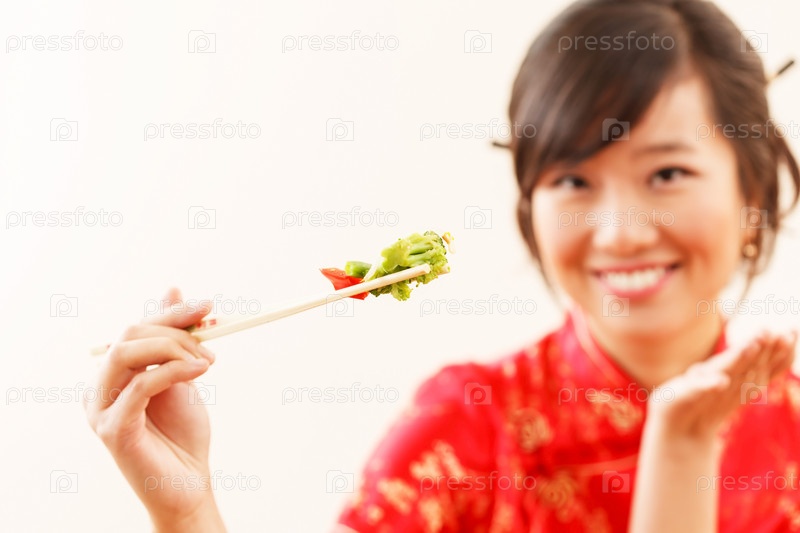 Китаянка с палочками для еды