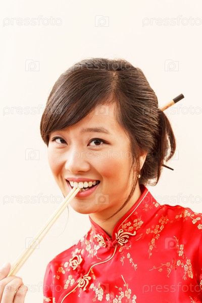 Китайская женщина с палочками