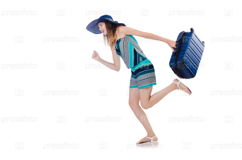 Женщина с чемоданами на белом фоне