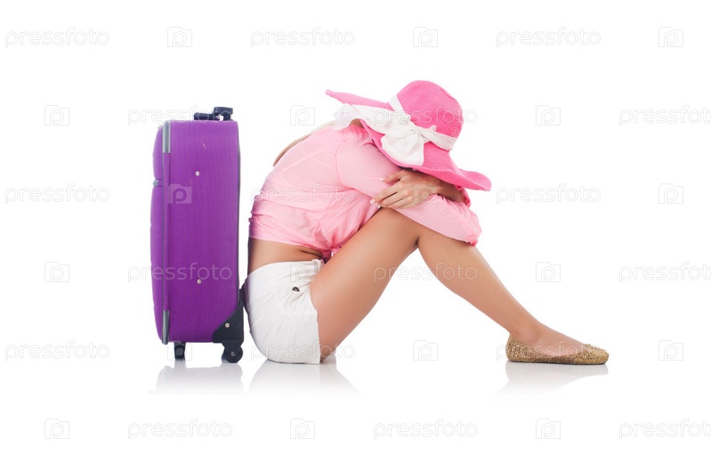 Женщина с чемоданами на белом фоне