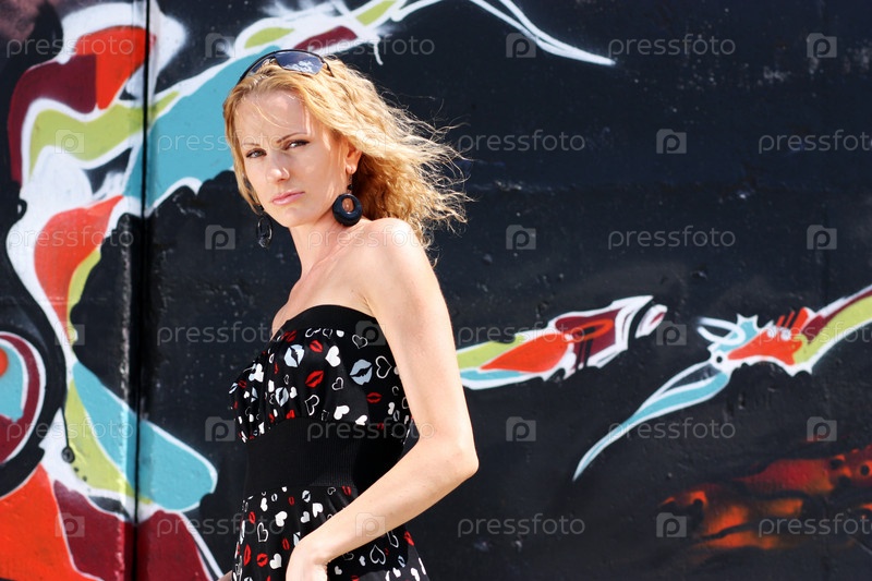 Девушка на фоне стены с женским силуэтом