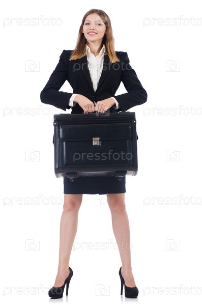 Женщина с чемоданами на белом фоне