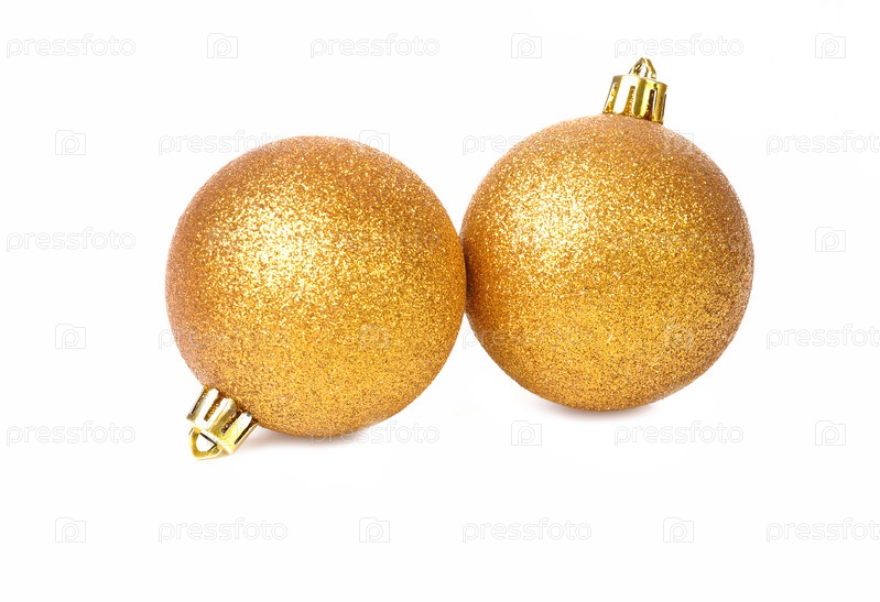 Два золотых рождественских мяча изолированы на белом