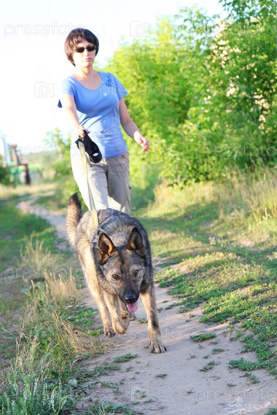 Бегун с собакой на проселочной дороге