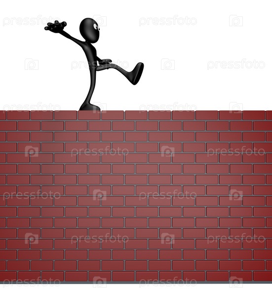 Человек на кирпичной стене - 3D иллюстрация