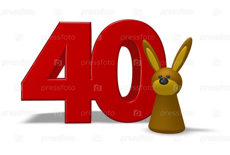 Число 40 и кролик - 3D иллюстрация