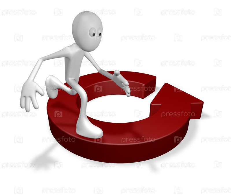 Человек бежит по круговой стрелке - 3d иллюстрация