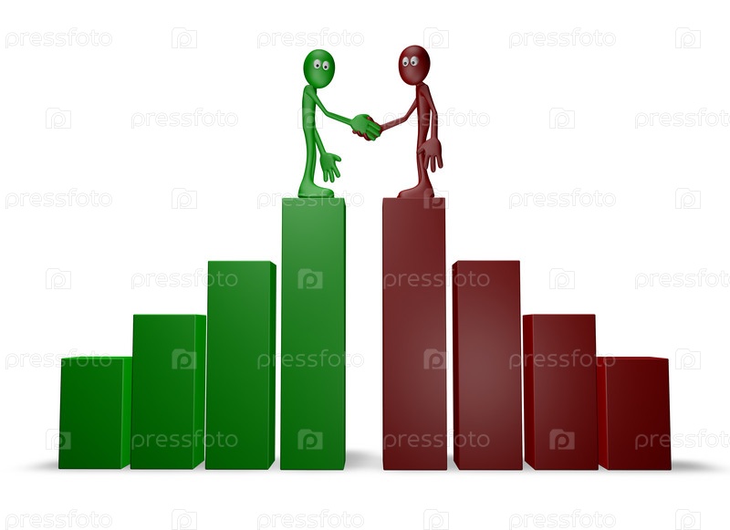 Два человека пожали друг другу руки на графике - 3d иллюстрация