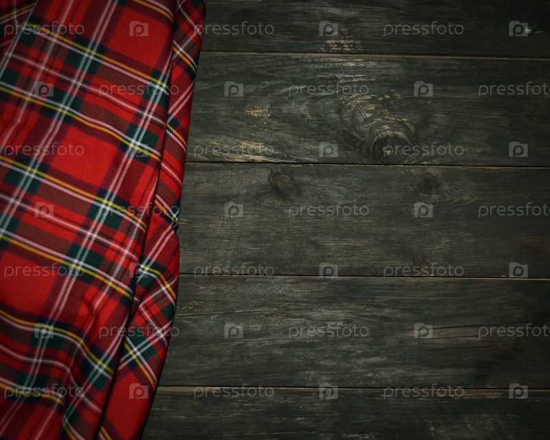 Клетчатая ткань на деревянном фоне