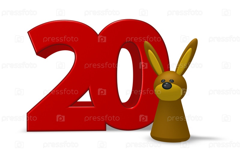 Номер двадцать и кролик - 3D иллюстрация