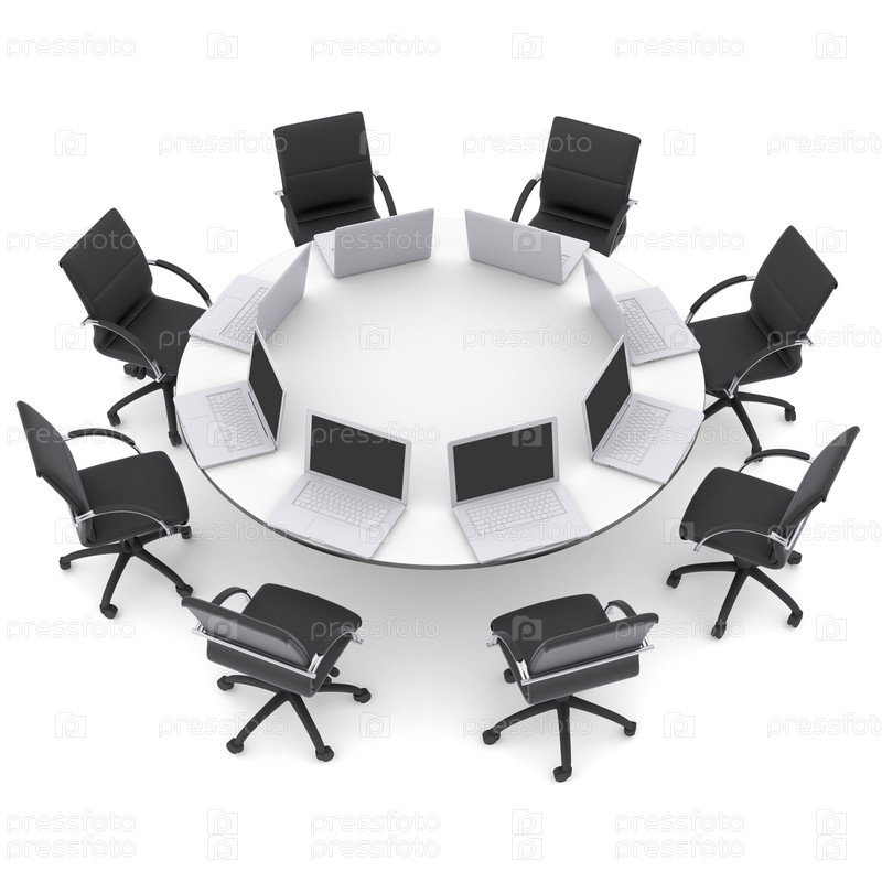 Ноутбуки на круглом столе и стулья