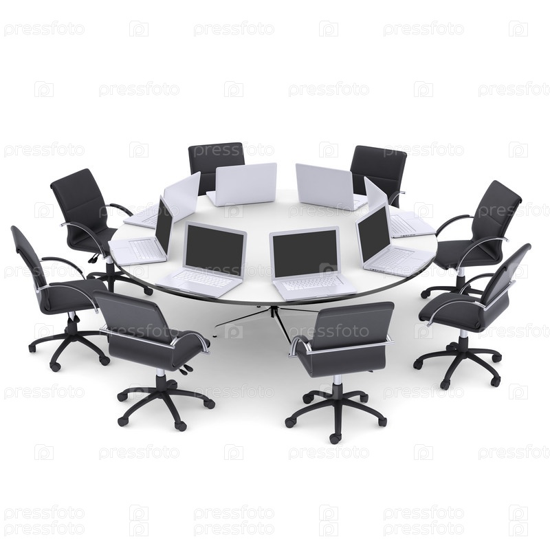 Ноутбуки на круглом столе и стулья