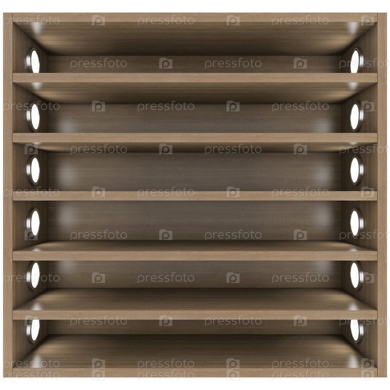 Деревянные полки со встроенными светильниками