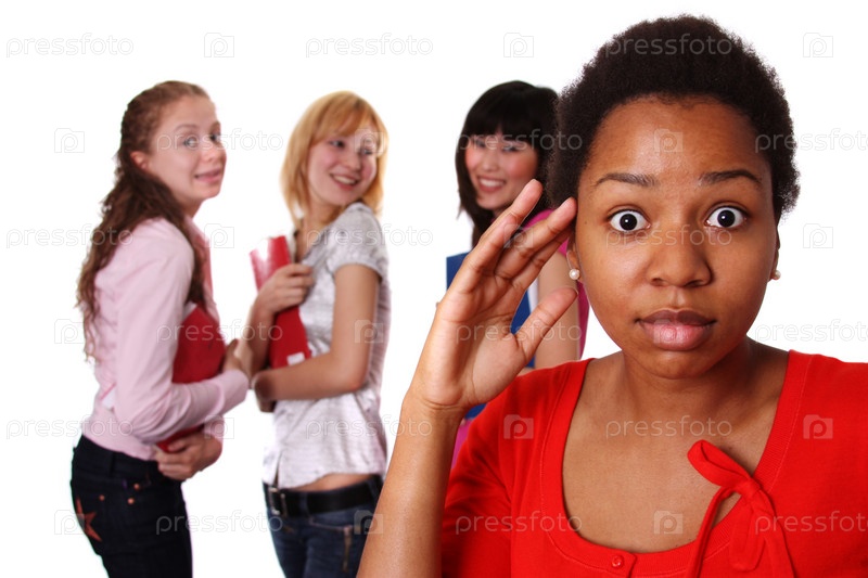 Подруги смеются над темнокожей девушкой