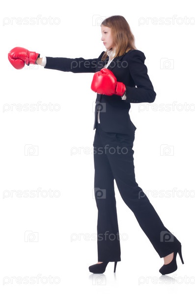 Смешная женщина в боксерских перчатках