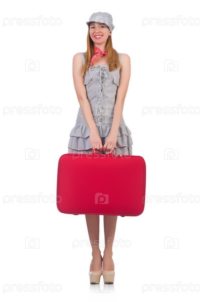 Женщина с чемоданами на белом фоне