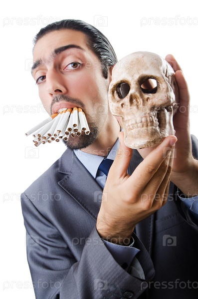 Антитабачная концепция с человеком и черепом