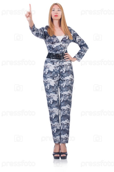 Женщина-солдат, изолированная на белом