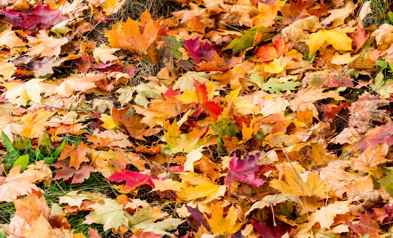 Разноцветные кленовые листья в траве