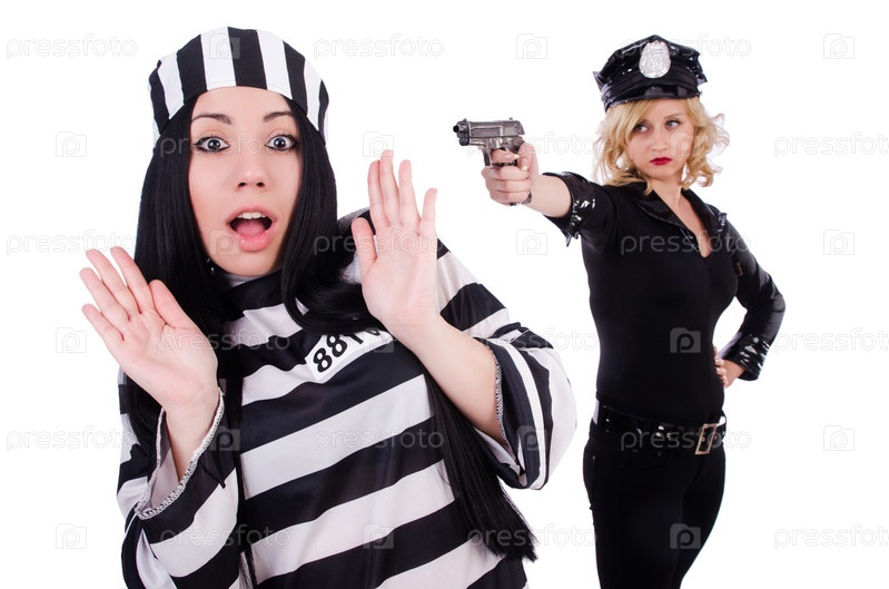 Заключенный и полицейский, изолированные на белом