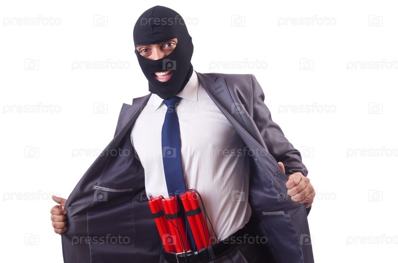 Террорист с динамитом, изолированный на белом фоне