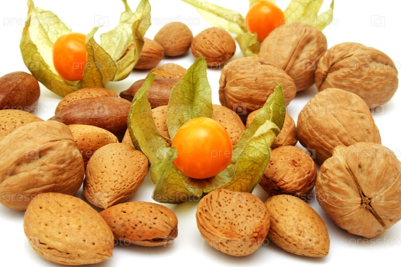 Орехи на белом фоне