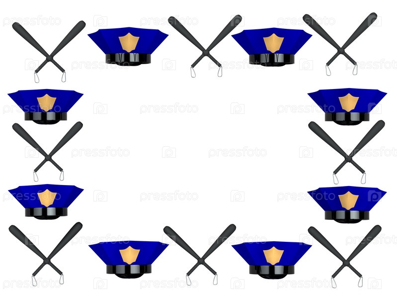 Абстрактная рамка с полицейскими фуражками и дубинками