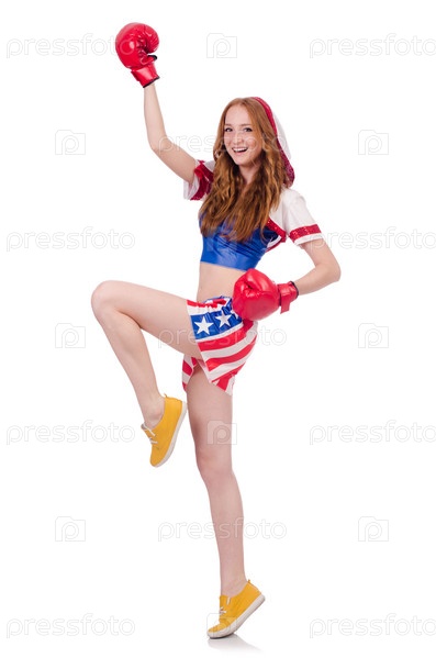 Женщина в боксерской форме на белом фоне