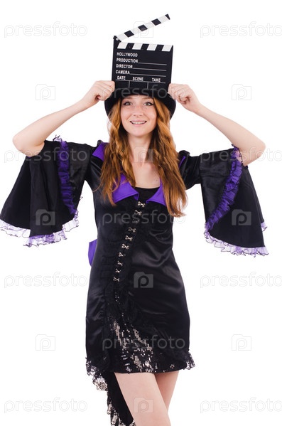 Женщина с хлопушкой, изолированная на белом фоне