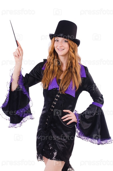Фокусница, изолированная на белом фоне
