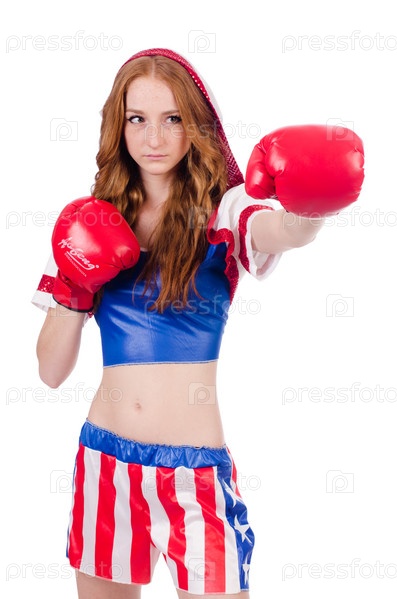 Женщина в боксерской форме на белом фоне