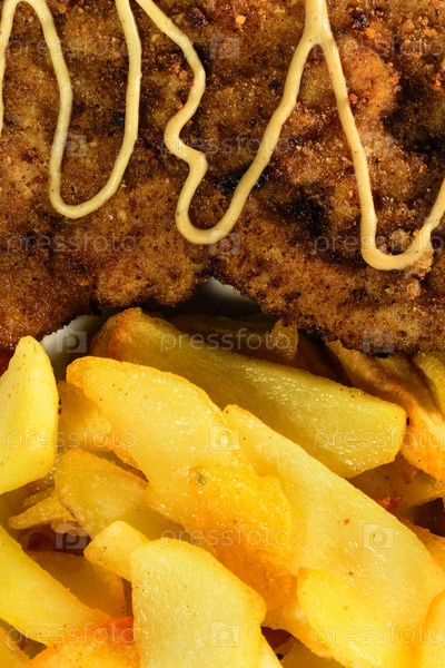 Картофель фри с куриными отбивными