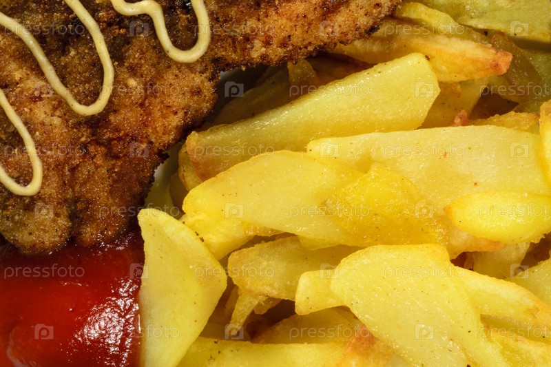Картофель фри с куриными отбивными